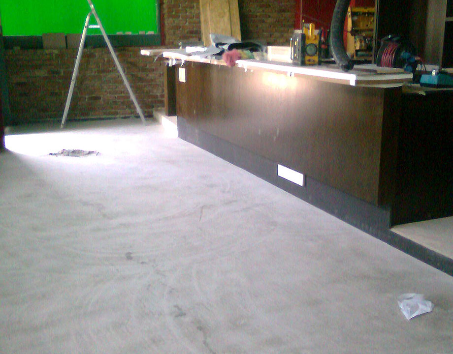 Verlegung von Eiche massiv Parkettboden, weiß pigmentiert, in der Three Sixty Bar.
